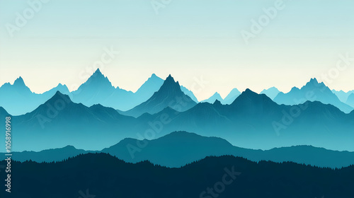 Serene mountain range silhouette with a blue gradient sky in the distance.
