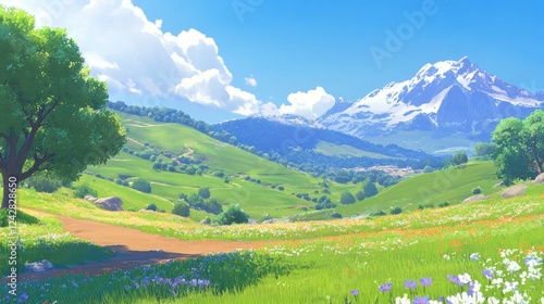 Serene Mountain Valley Spring Wildflower Meadow Landscape
