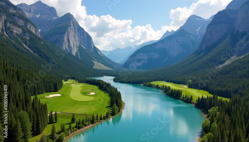 Serene Mountain Valley with Golf Course and River