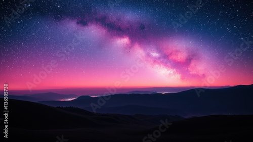 Serene Night Sky Over Rolling Hills With a Vivid Milky Way Galaxy