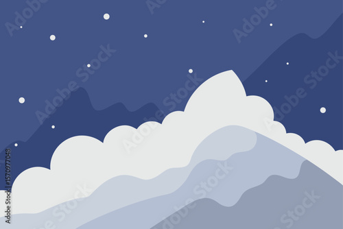 Serene Nightscape Mountain Peaks Emerging from Clouds Under Starlit Sky