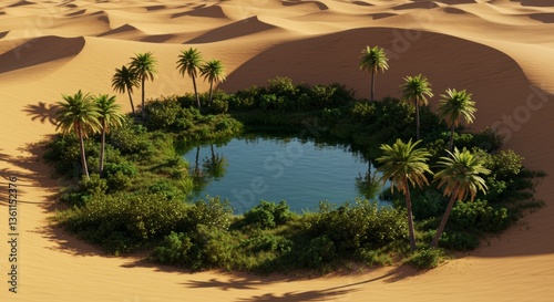 Serene Oasis in the Desert Lush Palm Trees Surround a Tranquil Pond