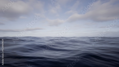 Serene ocean horizon underneath clouded sky