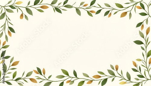 Serene olive branch border design with delicate details, rustic elegance