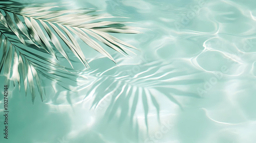 Serene Palm Leaf Shadow on Teal Water Illustration