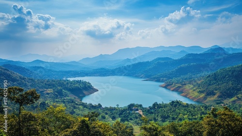 Serene panoramic view of Lake Valley surrounded by lush mountains and a clear blue sky showcasing nature's tranquility and beauty