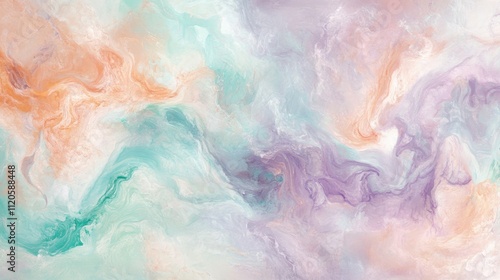 Serene Pastel Marble Texture - Swirling Hues of Mint, Peach, and Lavender