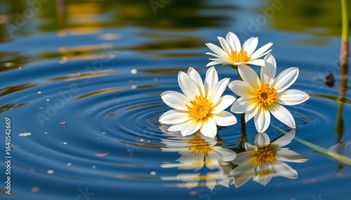 Serene Pond with White Flowers and Ripples