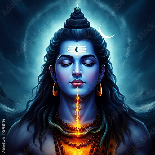 Serene portrayal of Lord Shiva in a deep meditative state with a divine aura, symbolizing spirituality, calmness, and cosmic energy