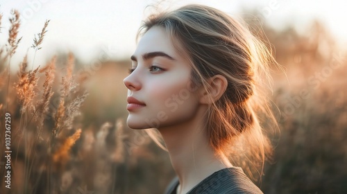 Serene Profile of a Young Woman in Nature
