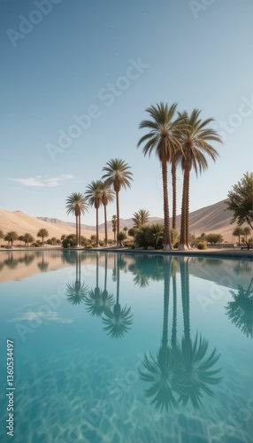 Serene Reflection of Palm Trees by Tranquil Oasis Water Body