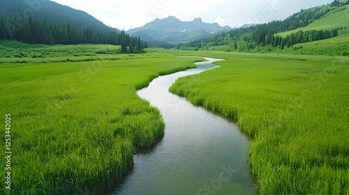 Serene river meandering through lush green valley (1)