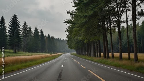 Serene Road Flanked by Trees on Either Side. A Tranquil and Peaceful Journey