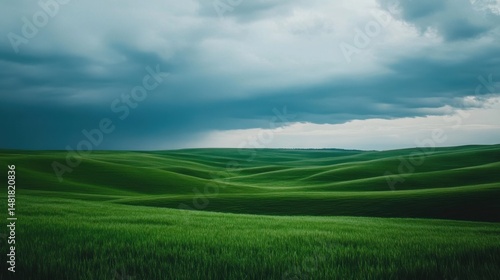 Serene Rolling Green Hills Under Dramatic Sky Nature Landscape Photography view calm field grass
