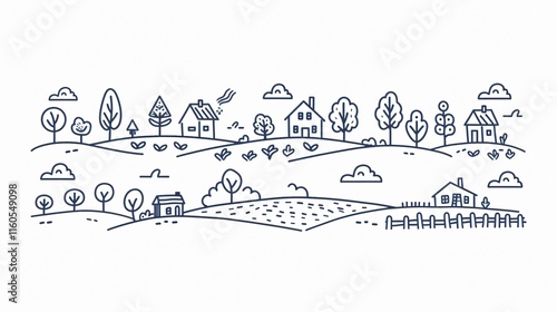 Serene Rural Landscape: Field, Meadow, House, Trees, Road - Nature Photography