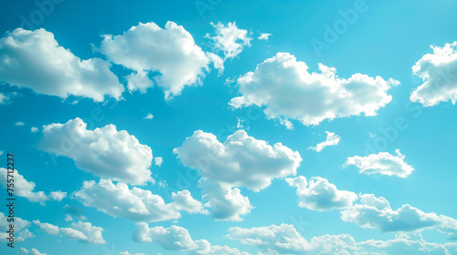 serene scene of a clear blue sky with fluffy white clouds scattered across it