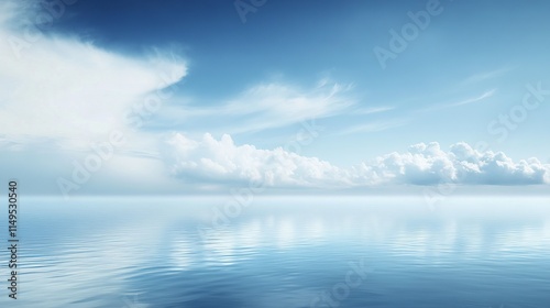 Serene Seascape with Gentle Waves and Soft Clouds Under Clear Blue Sky
