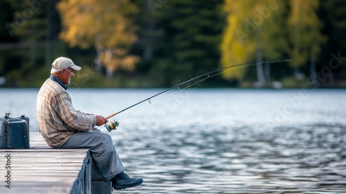 Serene Senior Fisherman: Capturing Tranquility on the Pier