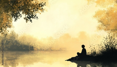 Serene Silhouette by the Golden River at Dusk