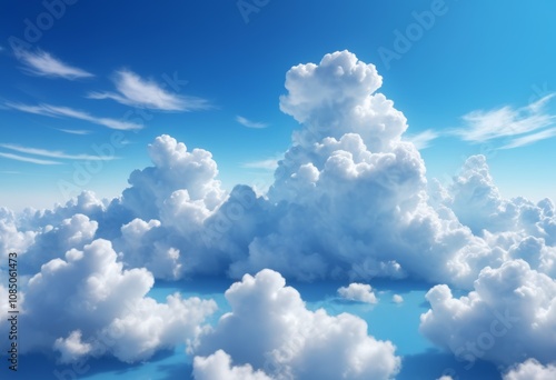 Serene sky background with fluffy white clouds floating in a bright and vivid blue atmosphere.