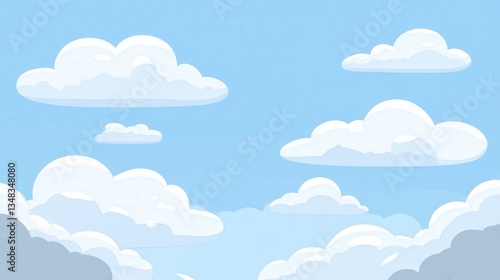 Serene Sky with Fluffy Clouds - A Peaceful Digital Art