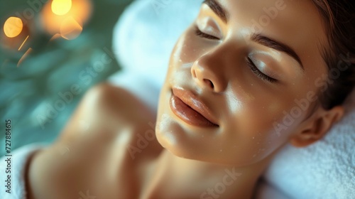 Serene Spa Experience: Woman Relaxing in Wellness Center. Generative ai