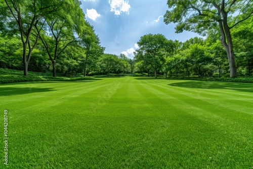 Serene Summer Park: Lush Green Trees and Grass in a Picturesque Setting