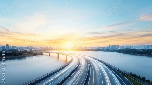 Serene Sunrise Over Cityscape and Winding River