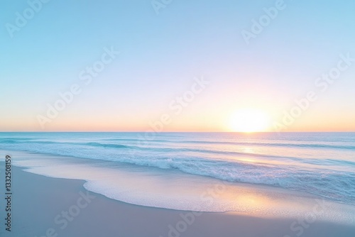 serene sunrise over expansive ocean horizon with gentle waves lapping onto secluded beach encapsulates tranquility