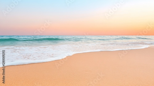 Serene Sunset Beachscape: Soft Waves and Pastel Hues at the Shore