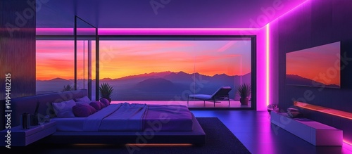 Serene Sunset Bedroom: A Modern Oasis with Mountain Views