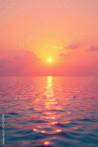 Serene Sunset Golden Hues Reflecting on Calm Ocean Waters at Day's End