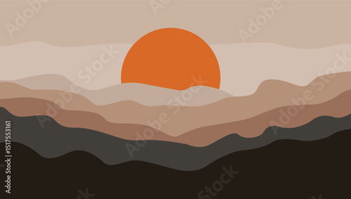 Serene Sunset Landscape Minimalist Mountain Range Illustration