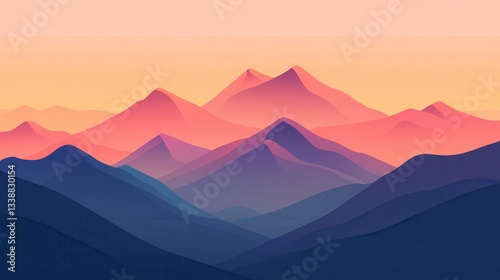 Serene Sunset Mountain Range Abstract Landscape Illustration