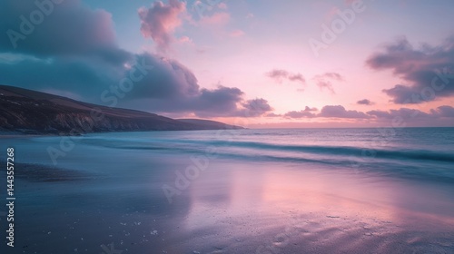 Serene Sunset Over Calm Ocean Waves with Soft Clouds in a Colorful Sky