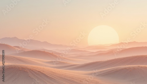 Serene Sunset Over Endless Sand Dunes with Soft Pastel Hues