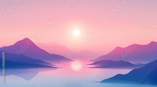 Serene Sunset Over Purple Mountains and Calm Lake