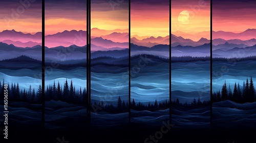 Serene Sunset Over Rolling Mountains And Forests