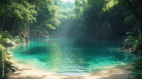 Serene Tropical Lagoon: Hidden Paradise in Lush Rainforest