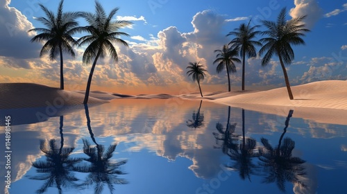 Serene Tropical Landscape with Palm Trees and Reflective Water
