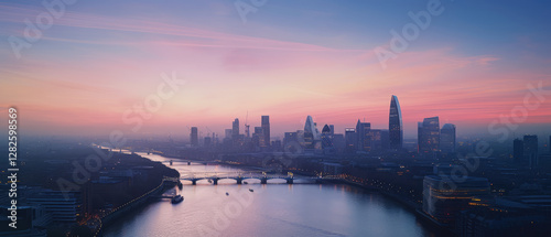 Serene Urban Sunset Over a City River