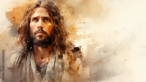 Serene Watercolor Depiction of Jesus on the Cross with Pastel Background Conveying Peace and Love