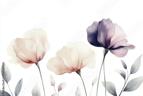 Serene watercolor flowers in pastel tones