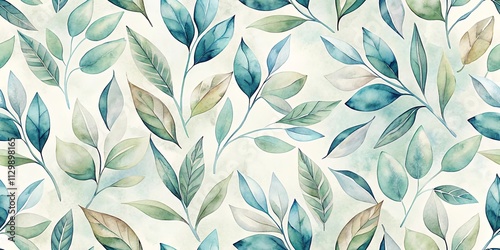 Serene Watercolor Foliage A Seamless Pattern of Teal and Green Leaves on a Soft Background