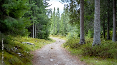 Serene winding path through lush green forest inviting nature lovers to explore : Generative AI