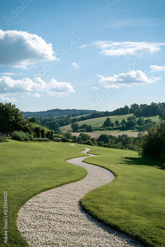 Serene Winding Path Through Lush Green Landscape