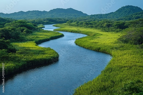 Serene winding river through lush greenery nature landscape tranquil environment scenic viewpoint hd imagery for relaxation