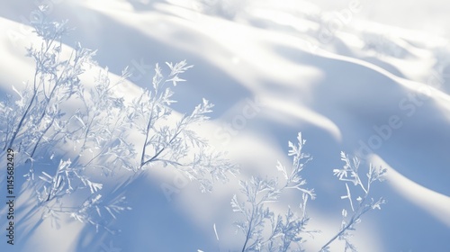 Serene winter landscape featuring pure snow and delicate snowflakes glistening under soft light in a tranquil natural setting.