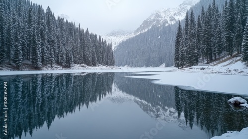Serene Winter Landscape: Mountains, Lake, and a Perfect Reflection