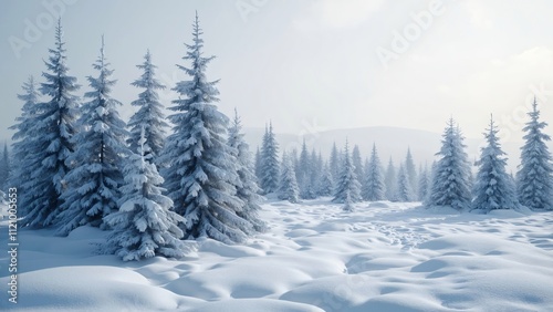 Serene Winter Landscape, Snow-Covered Spruce Trees in a Breathtaking High-Resolution Photo